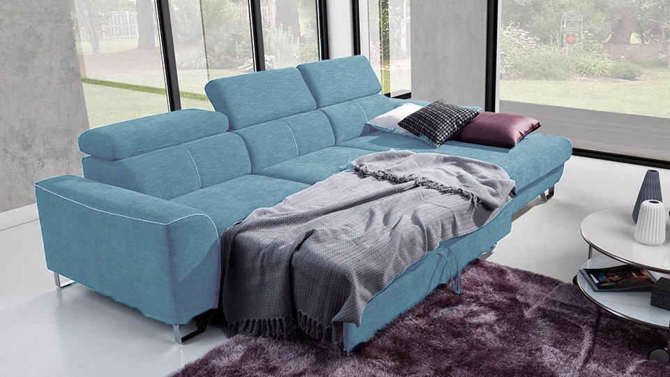 🛌 Sistem Delfin-Automat: Mecanism de extindere rapid și intuitiv, care transformă colțarul într-un spațiu de dormit generos de 225 x 123 cm. ✨