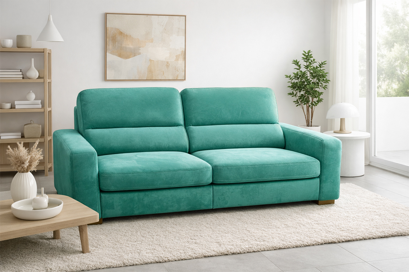 ✨ DISPONIBILITATE: Culoare Verde Turcoaz (Stofă Element 15) | Dotată cu ACȚIONARE ELECTRICĂ pentru 2 locuri.