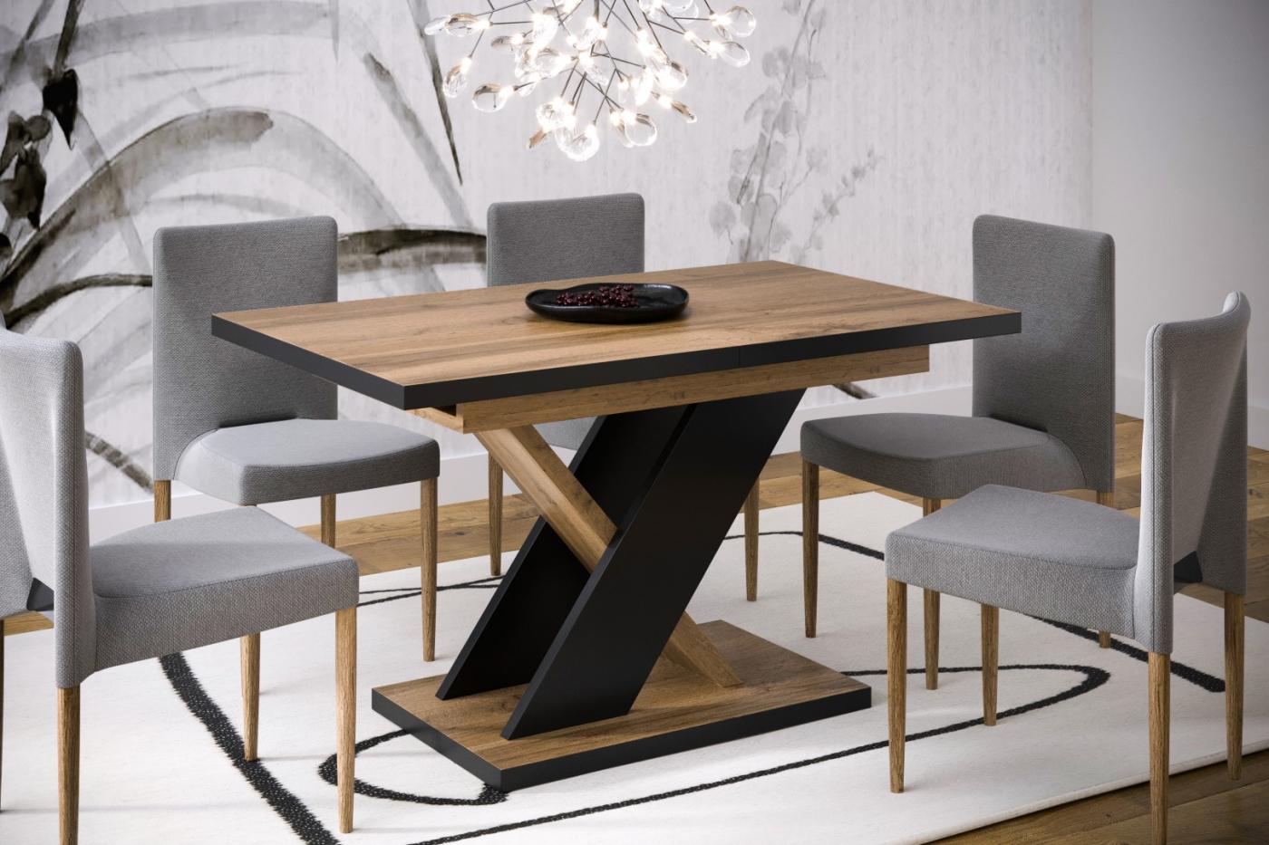 Masa de sufragerie este un produs robust și durabil, cu un furnir replică de înaltă calitate și accente negre mate. Cu un blat de masă de 25 mm grosime, această masă este ideală pentru cine mari sau întâlniri de familie. Panourile de extensie pot fi introduse individual pentru a mări masa și a crea spațiu suplimentar.